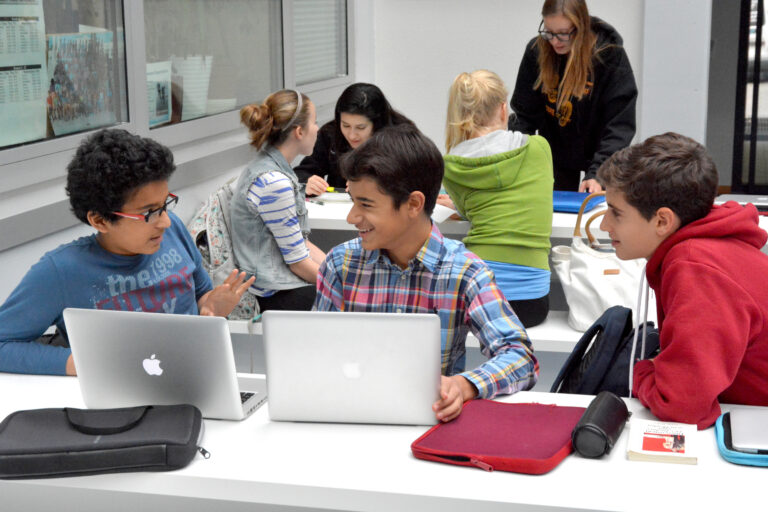 Die grüne Umgebung des Campus in Kombination mit modernster Technik schafft an dem trilingualen, persönlich ausgerichteten und ganztägigen Gymnasium eine besondere Lernatmosphäre.